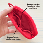 This small coin pouch comfortably fits multiple credit cards, folded bills, coins, and/or other small/flat items!