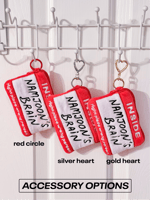 Your choice of keychain accessory (red circle carabiner, silver heart clasp*, gold heart clasp*)